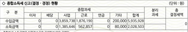 사업과 근로 병행 중이라 2024년 소득금액증명원에서 금액 부분 캡쳐한 파일로 소득부분 대체합니다..