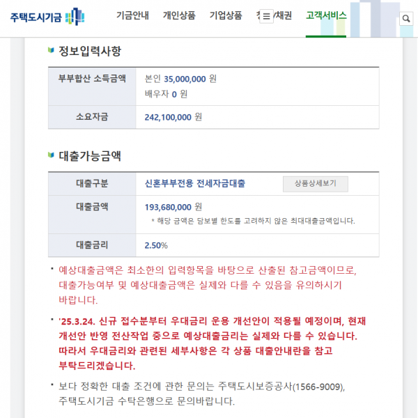 p.s. 주택도시기금 홈페이지에서 진행한 대출가능여부 및 예상대출금액 캡처본 첨부합니다.